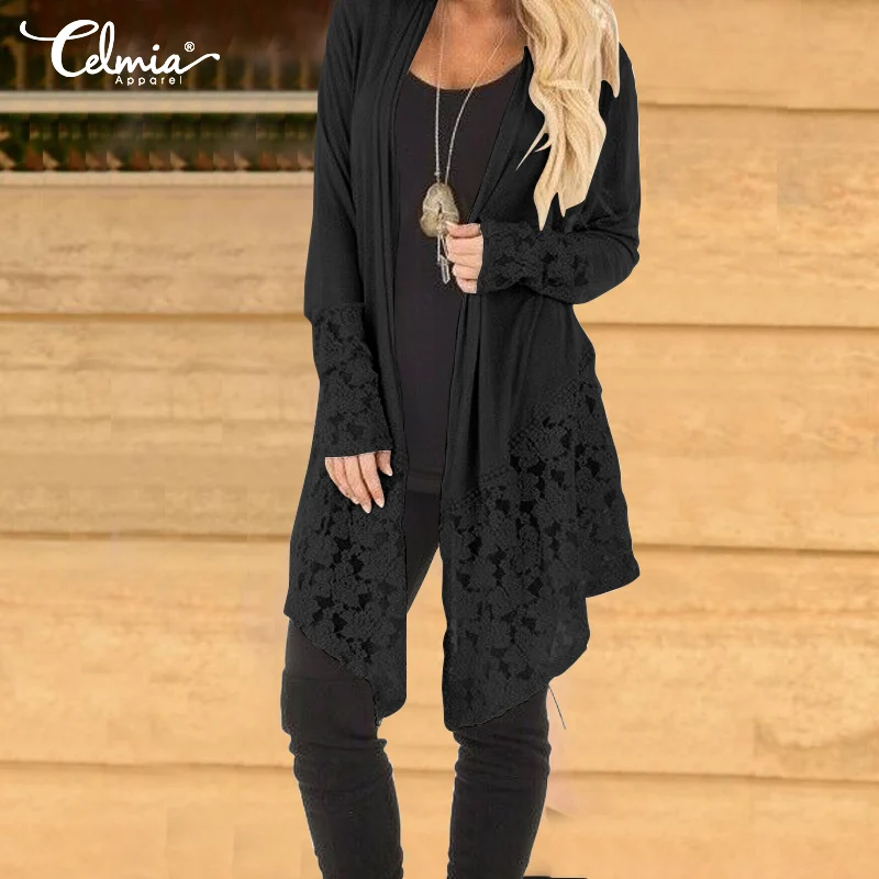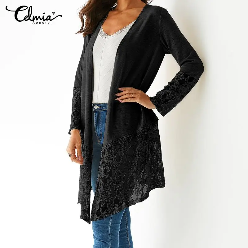 awesome Women Retro Kimono Mujer 2019 Cardigan Celmia Asymmetrical Tops Casual Lace Blouses Loose Shirts Pl