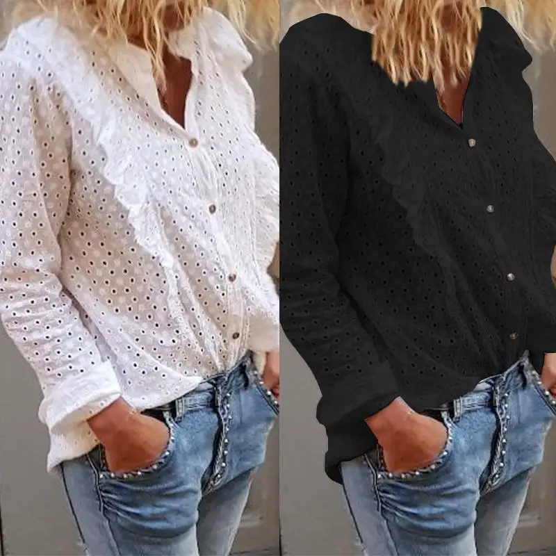 price cut ZANZEA 2019 Vintage Women's Shirt Sexy Hollw Out Embroidery Flowers Blouses Work Office Tops Long S