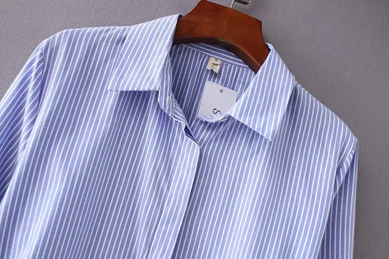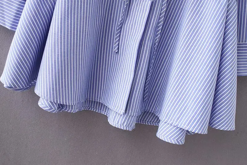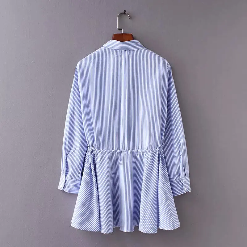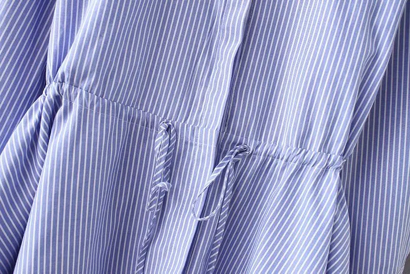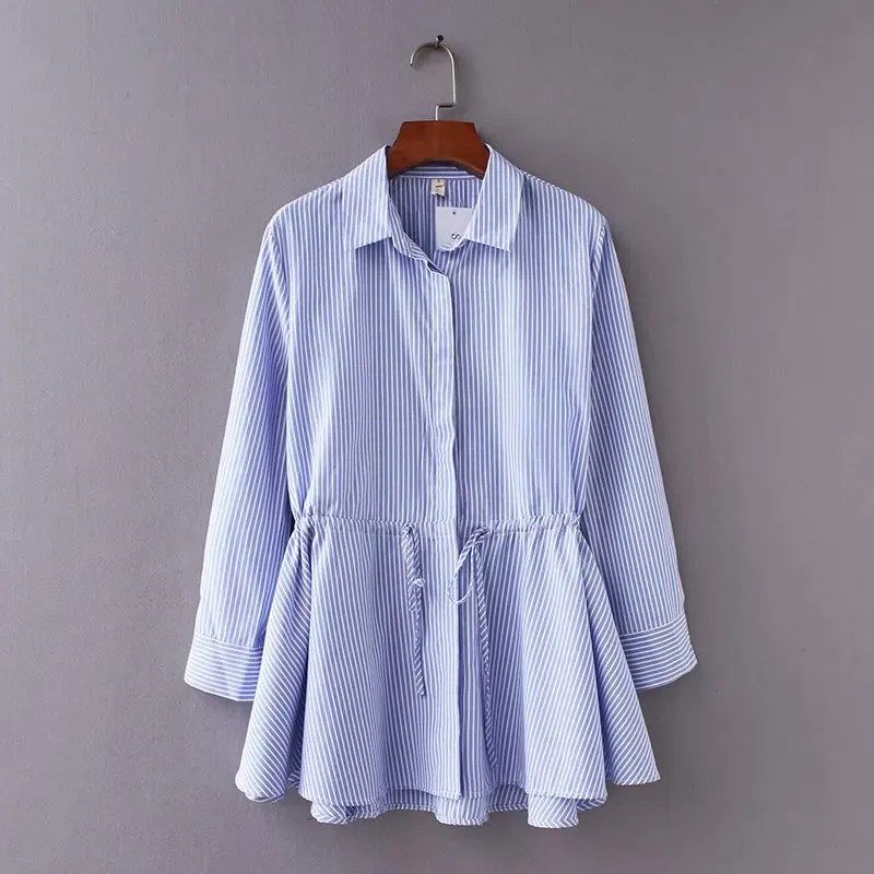 incredible women vintage long sleeve striped loose hem smock Shirt blouses women waist drawstring casual busin