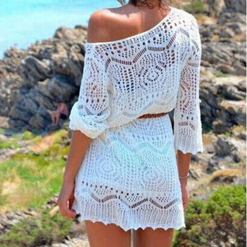 Finest New Sexy Hook Flower Blouse Beach Cover-up Hollow Out Knit Dress Summer Swimming Bikini Overwear So