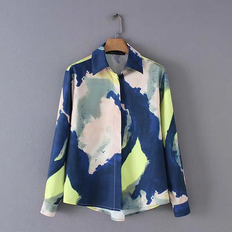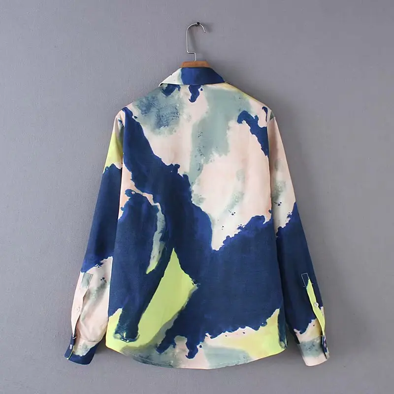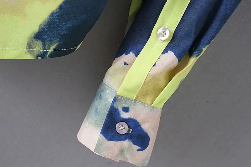 Finest women vintage gradual change tie dyed printing casual business blouse shirts women blusas chic long