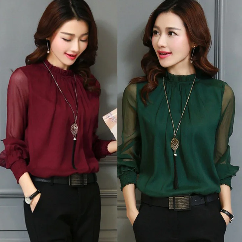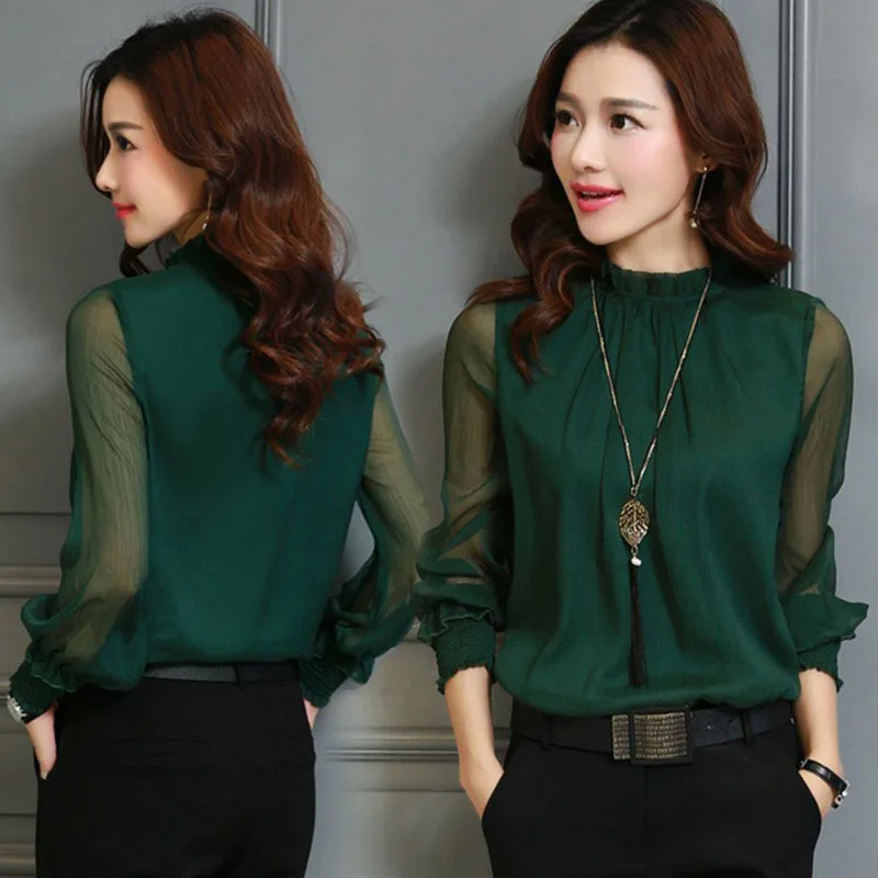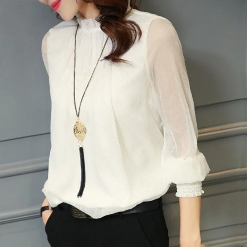 amazing Plus Size 3XL Spring Autumn Tops Women Blouses Office Mesh Chiffon Shirt Casual Long Sleeve Slim Sh