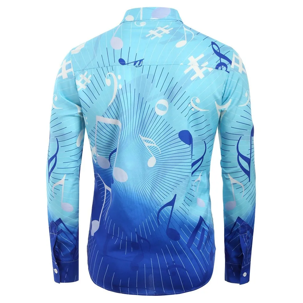 wonderful JAYCOSIN Camisa Masculina Men Ethnic Style Hawaiian Gradient Music Slim Blue Long Sleeve Shirt Blou