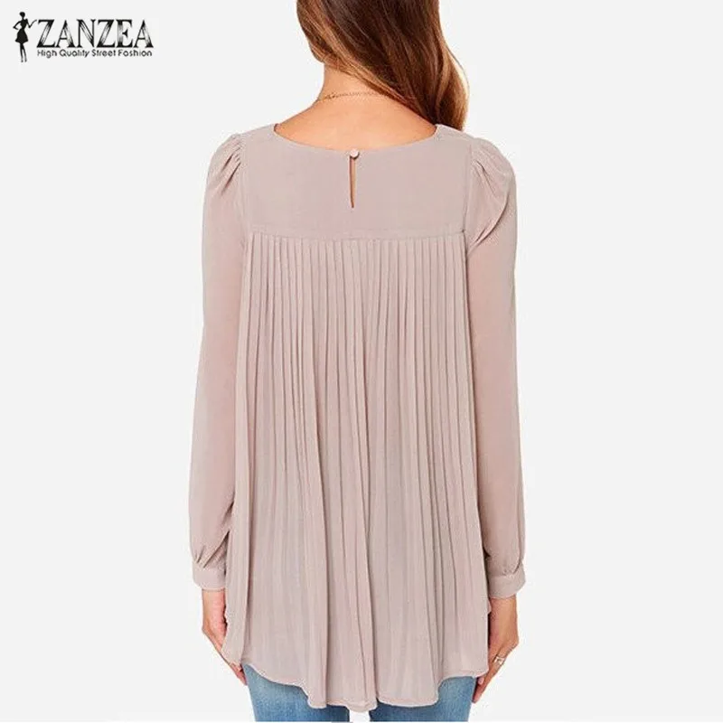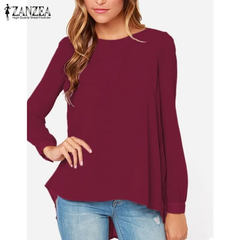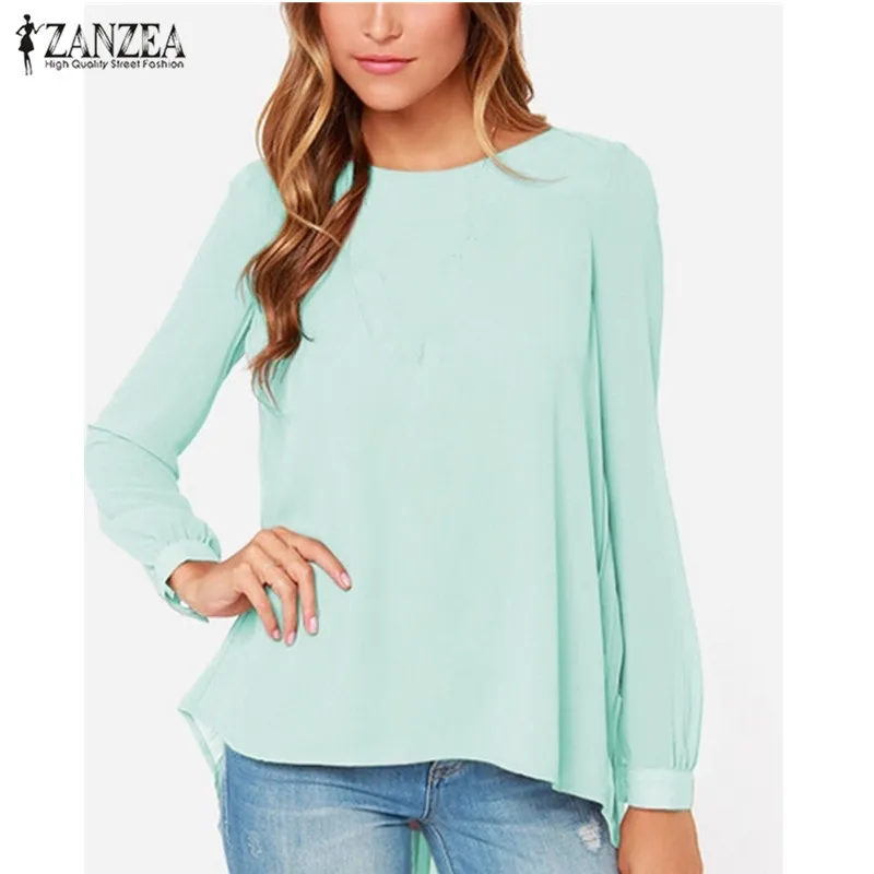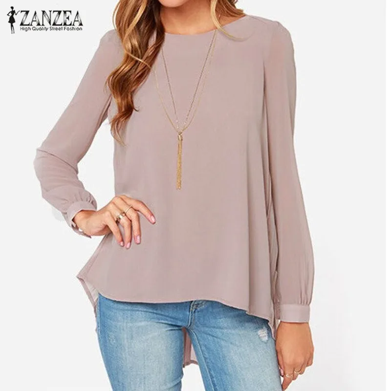 Finest ZANZEA Women Blouses 2019 Sexy Casual Loose Chiffon Tops Long Sleeve Oversized Solid Shirts Autumn