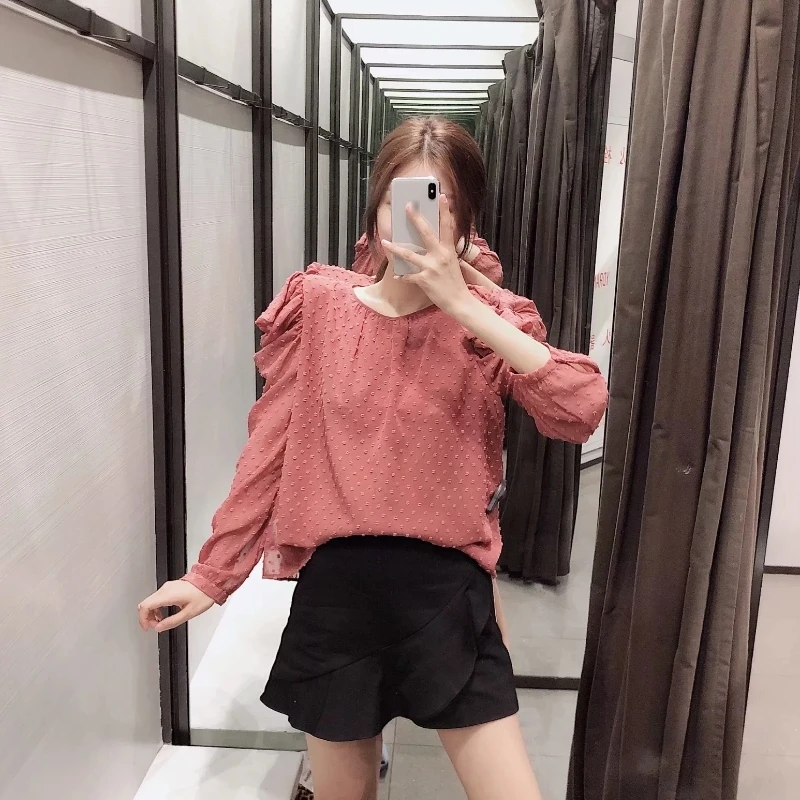 2019 women sweet cascading ruffles dots printing casual blouse shirts female long sleeve chiffon chemise chic blusas tops LS4170,new autumn women chic o neck long sleeve dots blouses shirts women pleated cascading ruffles chiffon blusas feminina tops LS4260, new autumn women chic o neck long sleeve dots blouses shirts women pleated cascading ruffles chiffon blusas feminina tops LS4260