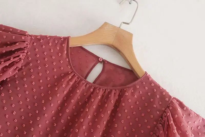 price reduction new women elegant dots pattern casual chiffon Shirts blouses women pleats puff sleeve roupas chic o
