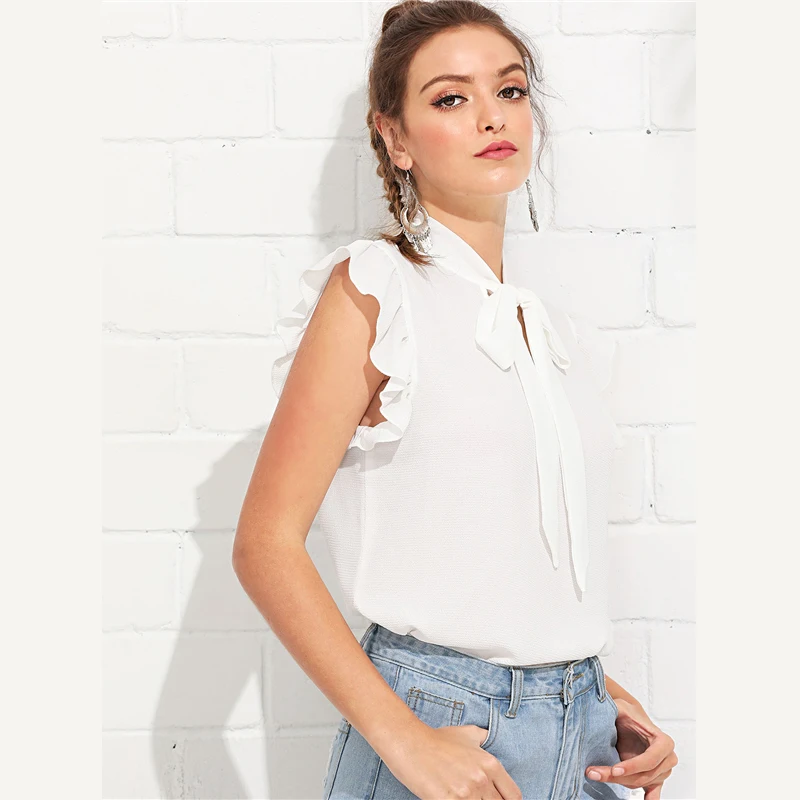 SHEIN Elegant Red Bow Tie Neck Ruffle Trim Petal Print Top Blouse Women Summer 2019 Office Lady Workwear Sleeveless Blouses,SHEIN Tie Back Raglan Ruffle Shoulder Casual Solid Blouse 2019 Cute Summer Office Ladies Short Sleeve Womens Tops and Blouses, SHEIN Tie Back Raglan Ruffle Shoulder Casual Solid Blouse 2019 Cute Summer Office Ladies Short Sleeve Womens Tops and Blouses