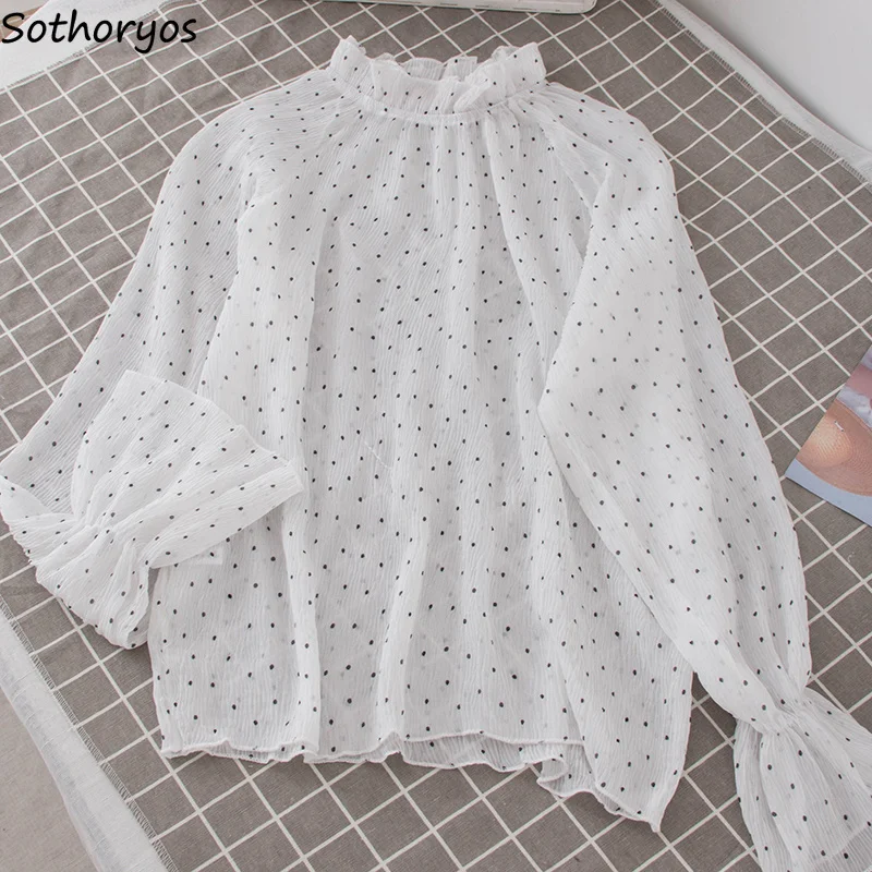 Promo Shirts Women Chiffon Solid Kawaii Turtleneck Flare Sleeve Shirt Trendy Womens All-match Korean Styl