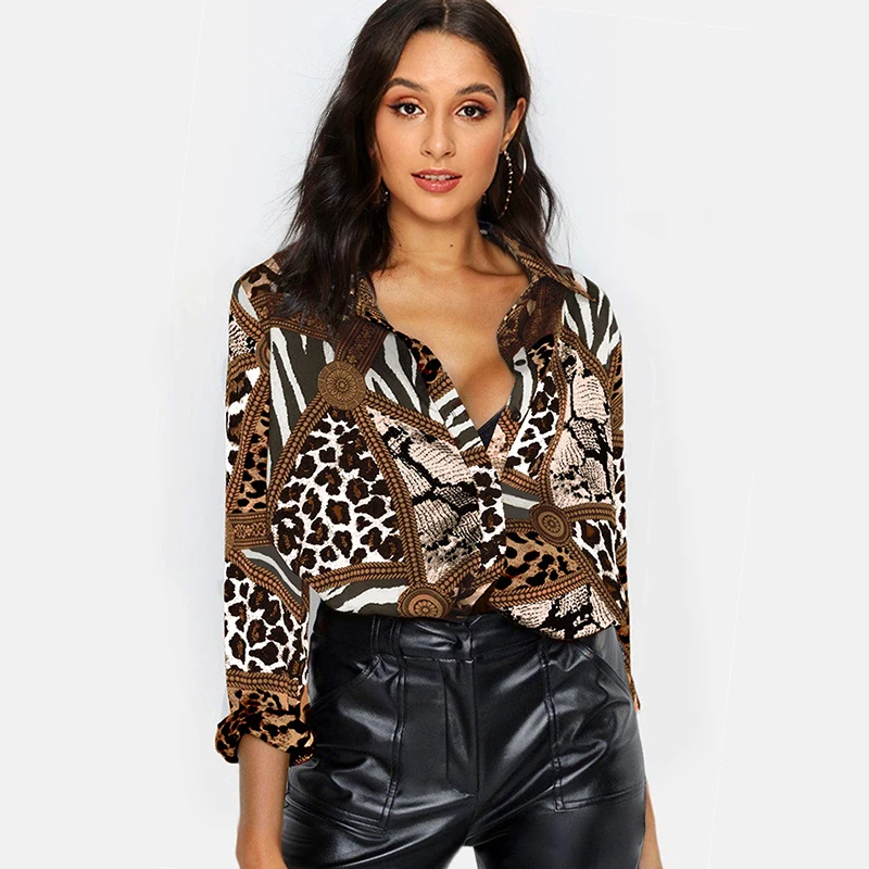 remarkable Women Blouses Sexy Leopard Blouse Shirt Long Sleeve Office Shirt 2020 Fashion Autumn Casual Vintage