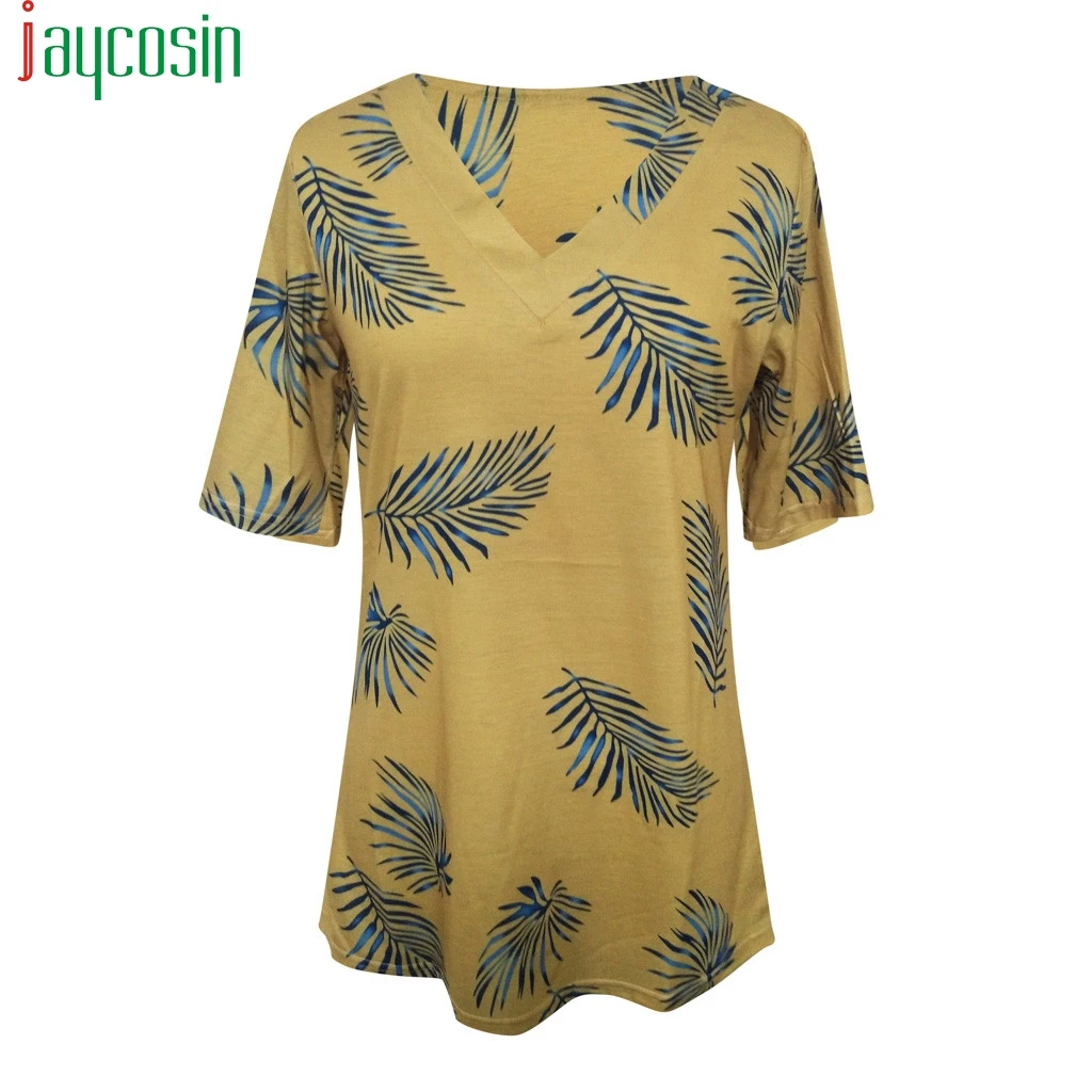 remarkable Summer Women's T-Shirt Short Sleeve Print Casual Loose V-neck Beach Tops Ladies Running Sports tshi