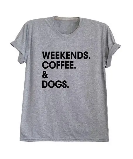 discount Fashion Tumblr T-Shirt Weekends Coffee & Dogs T Shirt Tees Cotton Tops Women Hipster Graphic tshirt