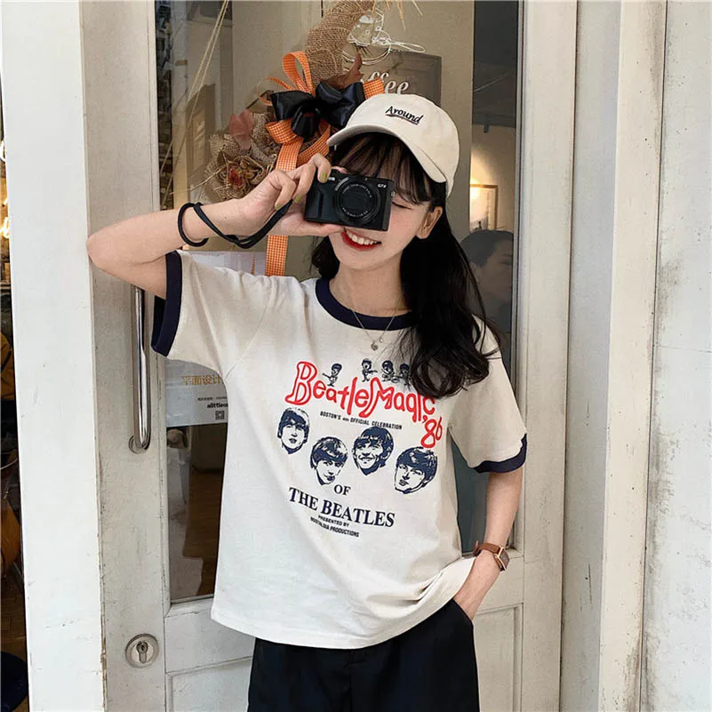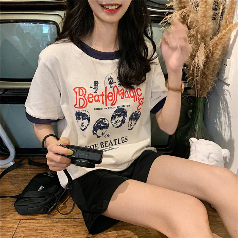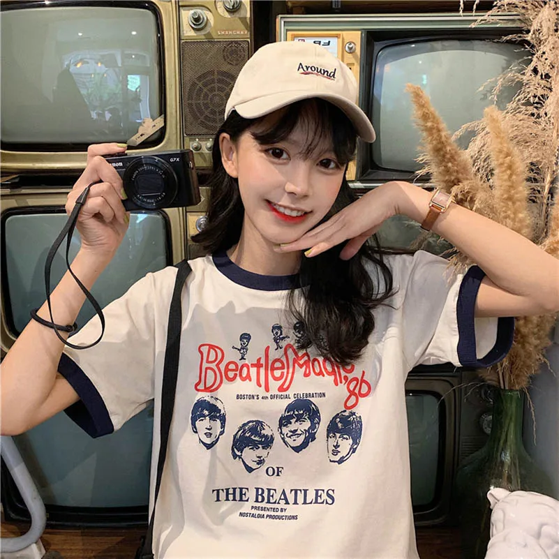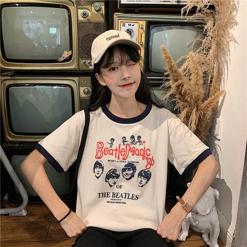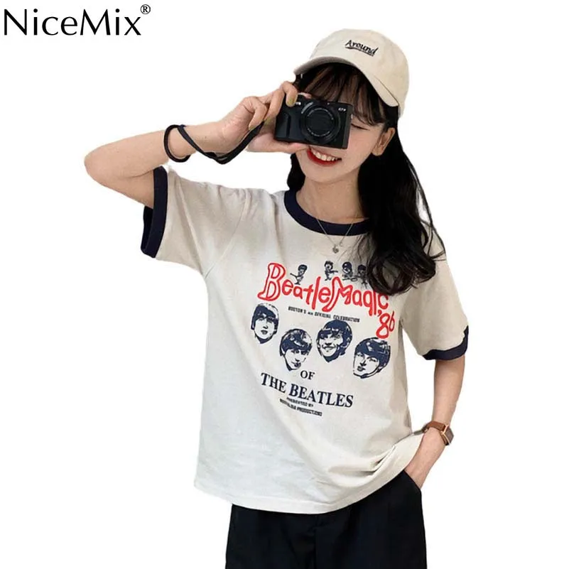 discount NiceMix Harajuku Patchwork tshirt Women Summer T-shirt Cotton Vintage Punk Tee Shirt Femme Retro St