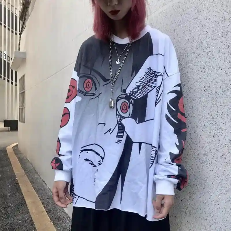 discounted anime tops Hip Hop harajuku T Shirt Uzumaki Sasuke Uchiha T-shirt Casual Vintage TShirt Cartoon Pri