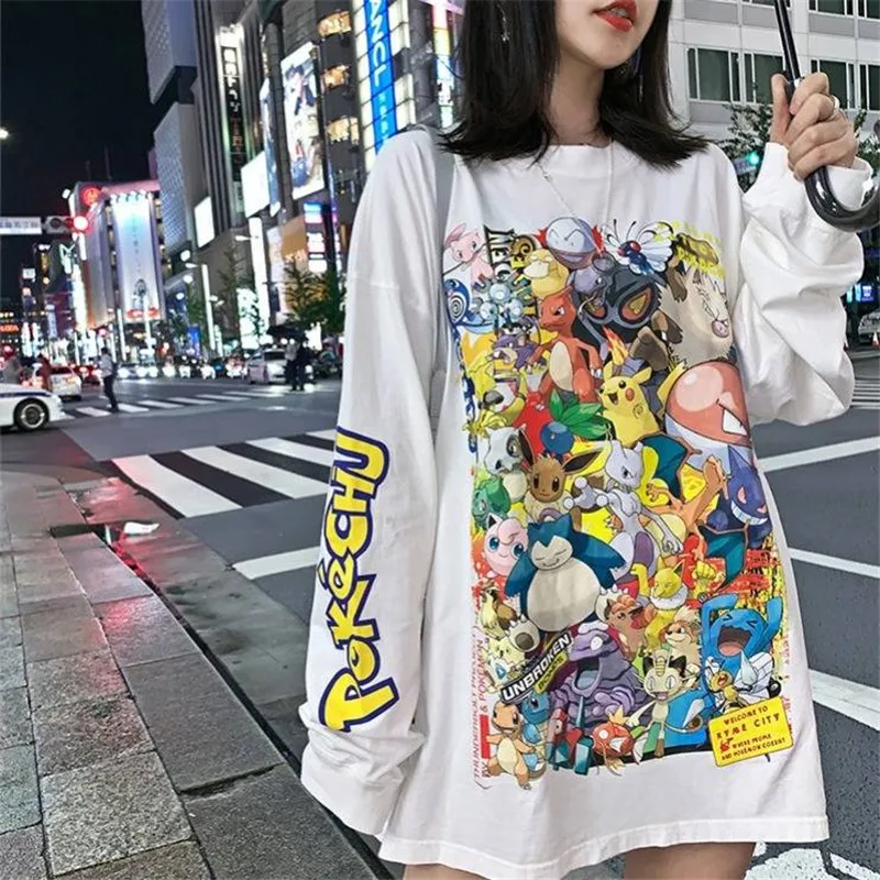 discounted Autumn Harajuku Tshirt Streetwear Cartoon Pokemon T Shirt Females Cute Amine Print Tshirt Streetwea