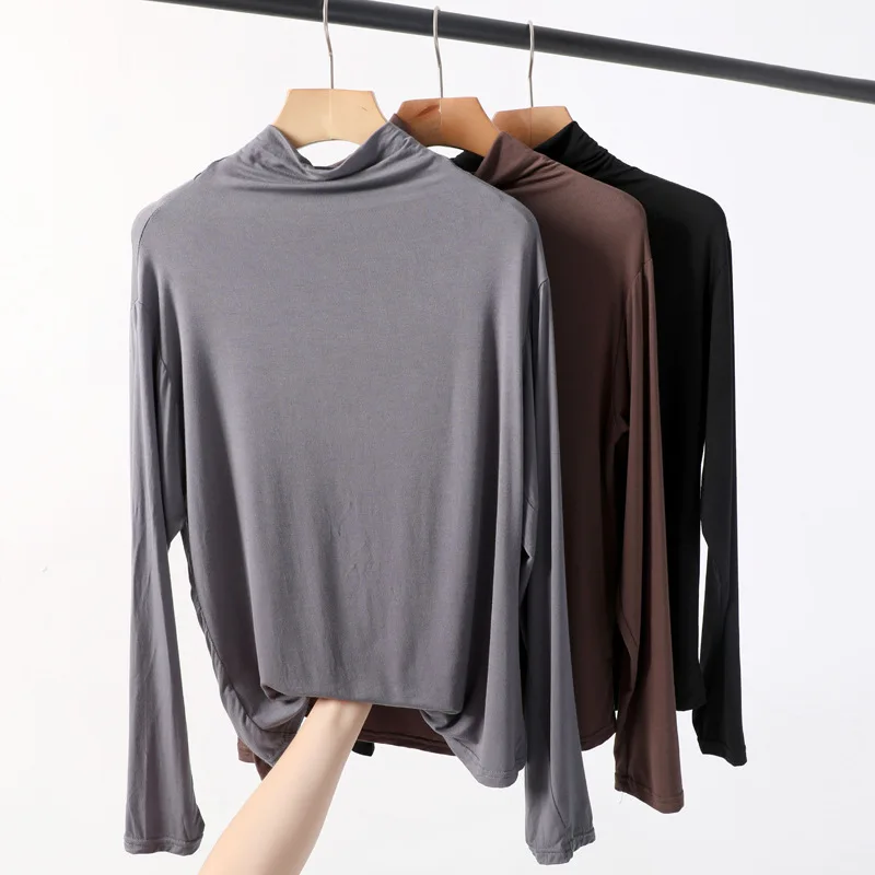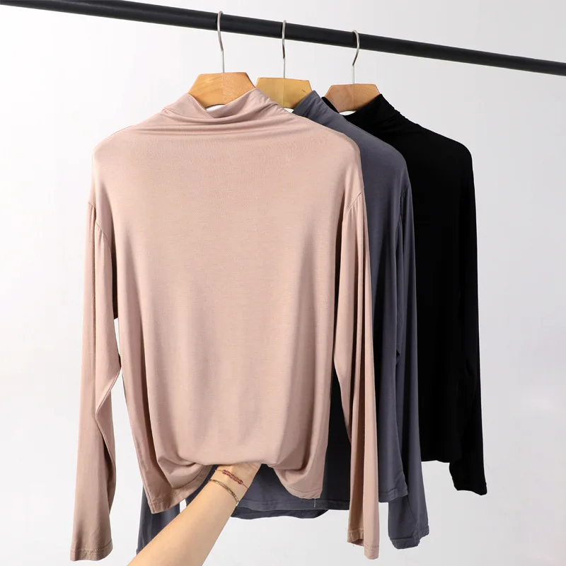 Ideal tshirt 2019 autumn winter new half-high collar bottoming t shirt women long-sleeved modal t-shirt w