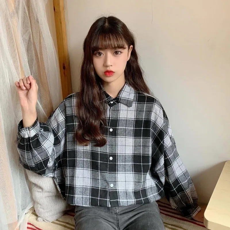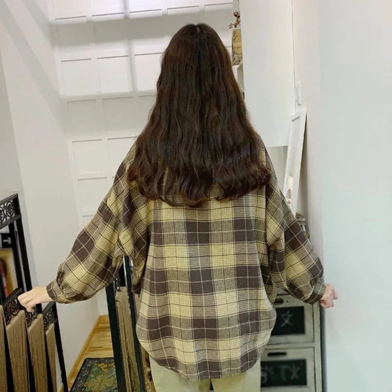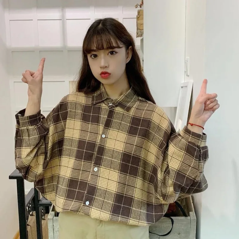 incredible Shirt For Unisex Loose Plaid Button Turn Down Collar Shirt Bat Sleeve Shirt Women Or Men Clothing