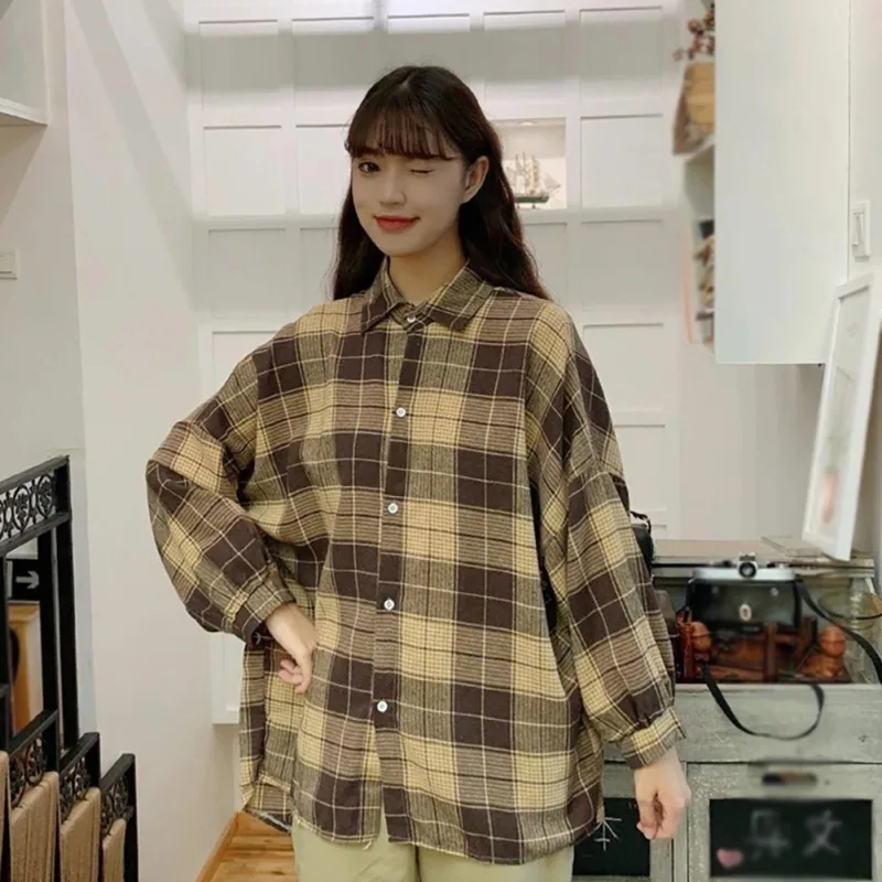 buy Shirt For Unisex Loose Plaid Button Turn Down Collar Shirt Bat Sleeve Shirt Women Or Men Clothing