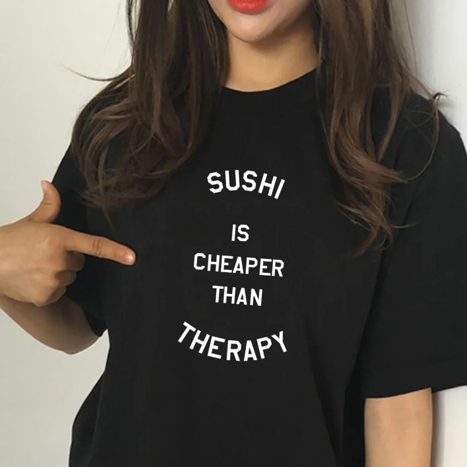 Promo Women's Fashion SUSHI Letters Print T-shirt Plus Size Lady Summer Tops Graphic Tee Short Sleeve Cas
