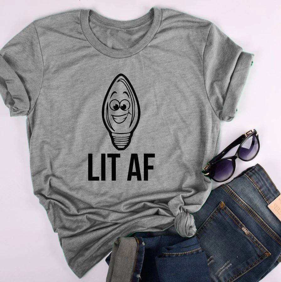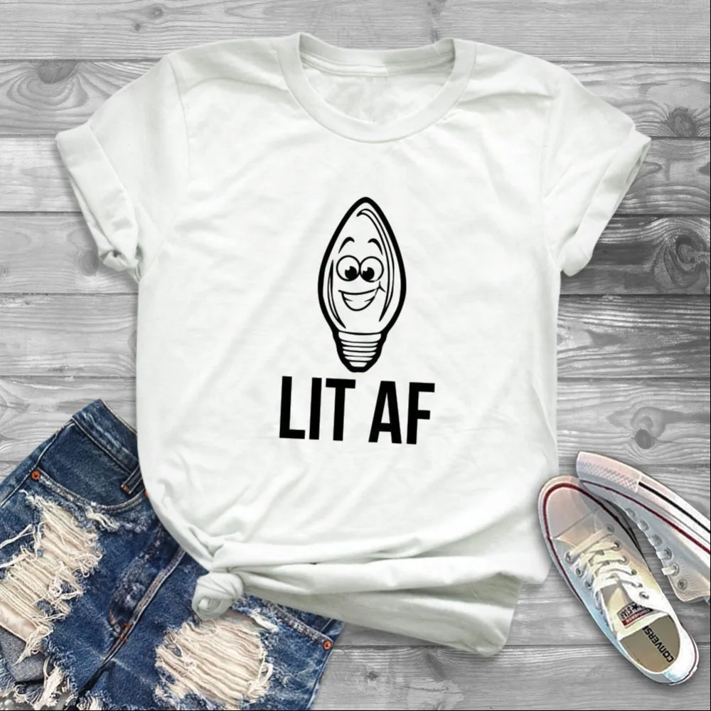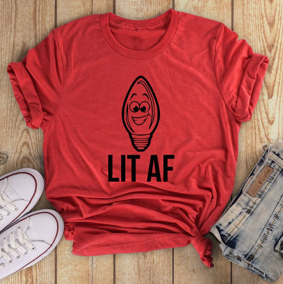 buy LIT AF light bulb T-shirt funny graphic cute gift aesthetic harajuku Christmas lights tshirt vintag