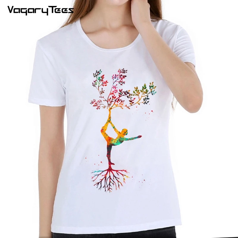 remarkable Popular Exercise Pose tree Om Chakras Mindfulness Meditation Zen Art Tshirt Summer Women t-shirt Ca