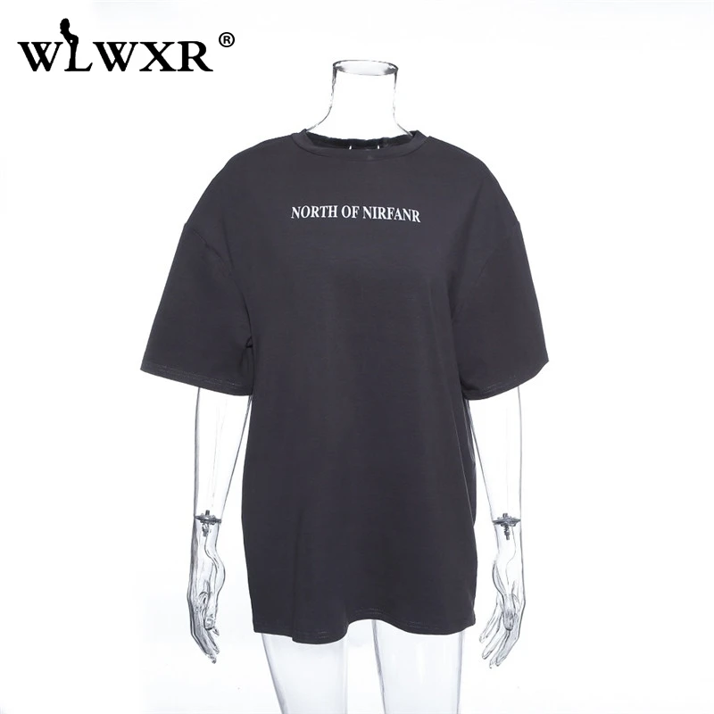 remarkable WLWXR Casual Harajuku Oversized T Shirt Women Top 2019 Letter Print O Neck Gray Summer Loose Long T